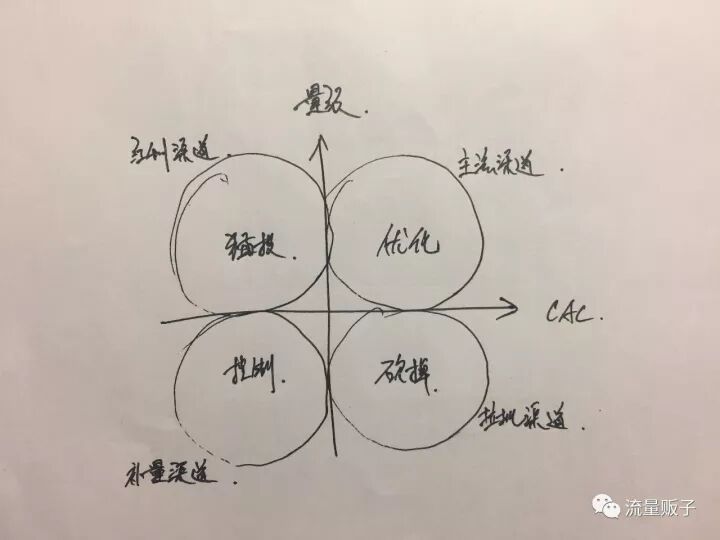第四象限“低量级、高CAC”是“垃圾渠道”,如果非渠道优化出了问题,直接抛弃。